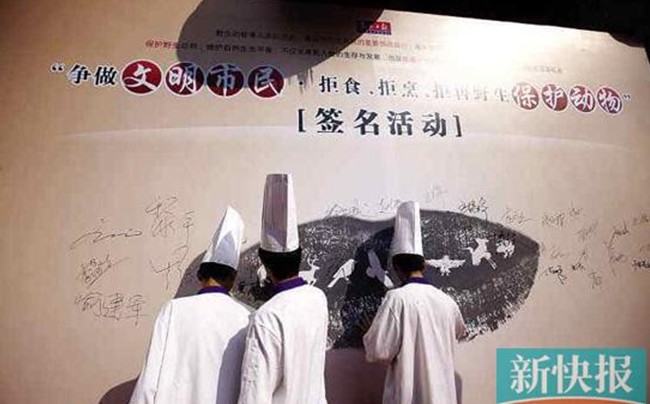 由東莞市文明辦和市林業(yè)局共同主辦的“爭做文明市民,拒食野生保護(hù)動(dòng)物”公益倡議活動(dòng)上周五啟動(dòng),當(dāng)天就吸引了百余家餐飲單位的廚師聯(lián)合簽名拒烹野生保護(hù)動(dòng)物。