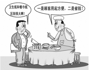 有破洞、容易爛、還會掉白渣,這樣的餐巾紙你還敢用嗎?而有些餐廳為了節(jié)省成本甚至用廁用紙冒充餐巾紙,這樣的所謂餐巾紙可真夠讓人倒胃口的。俗話說,病從口入,既然已經(jīng)發(fā)現(xiàn)了問題,監(jiān)管部門就應(yīng)該及時處理,生產(chǎn)企業(yè)更應(yīng)該認真反思、認真解決問題,提升產(chǎn)品質(zhì)量,保護消費者的健康安全。