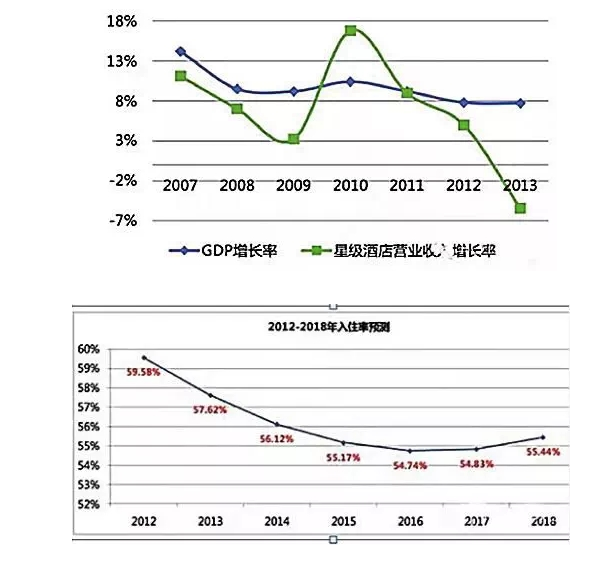近日,德勤中國(guó)合伙人金建在中國(guó)飯店全球論壇上透露,預(yù)計(jì)中國(guó)飯店業(yè)入住率將持續(xù)下跌,直到2017年才有望觸底反彈。此外,從2010-2013年,酒店年度平均資本化率分別為:4.00,3.97,3.11,1.59。這意味著投資高星級(jí)酒店的回報(bào)年限從25年,一直降到62年。